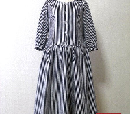 ローウエストのストライプ模様ワンピース~『ソーイングクローゼット』より(過去作品) 綿100%のブロード生地(ストライプ模様)で作りました。裏地は夏用の「サップ」です。ボタンは義母からいただいたヴィンテージのもの。上質なつくりをしています。このワンピースの型紙は内田彩仍さん著『ソーイングクローゼット』をアレンジしたものです... 2024.12.05 作品集過去作品 作品集過去作品 布もの