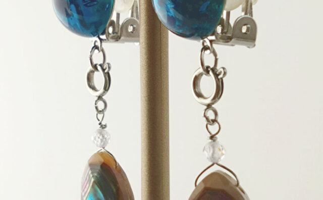 青い琥珀とアバロンシェルのイヤリング 青く染められた琥珀(バルティックアンバー)とアバロンシェルのペアシェイプカットのクリップ式イヤリング(蝶バネイヤリング)です。金具はすべてサージカルステンレスを使用しています。青い琥珀とアバロンシェルの間に輝く小さなキュービックジルコニアが... 2024.12.12 2024.12.17 イヤリング作品集 イヤリング作品集 2wayアバロンシェル(鮑)キュービックジルコニア(cz)ステンレス琥珀(アンバー)