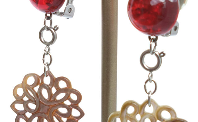 赤い琥珀と透かしブラックシェルのイヤリング 赤い色が美しいバルティックアンバーと、繊細な透かし模様が上品なブラックシェル(黒蝶貝)の2wayイヤリングです。クリップ式イヤリング(蝶バネイヤリング)の金具も含め、金属部分はすべてサージカルステンレス。ぶら下がっているブラックシェルの透か... 2024.12.17 イヤリング作品集 イヤリング作品集 2wayステンレスブラックシェル(黒蝶貝)琥珀(アンバー)